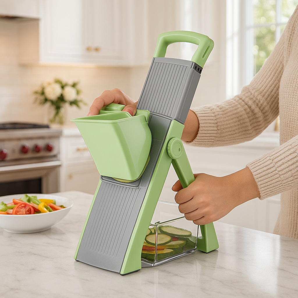 Cette mandoline cuisine a été conçue pour éliminer le stress lié aux coupures accidentelles. Contrairement aux couteaux traditionnels qui exigent adresse et concentration, elle offre un systÚme de protection efficace. Vous souvenez-vous de cette appréhension en tranchant rapidement des légumes ? Ce sentiment appartient désormais au passé grùce à son design ergonomique et sécurisé qui protÚge vos doigts à chaque utilisation.